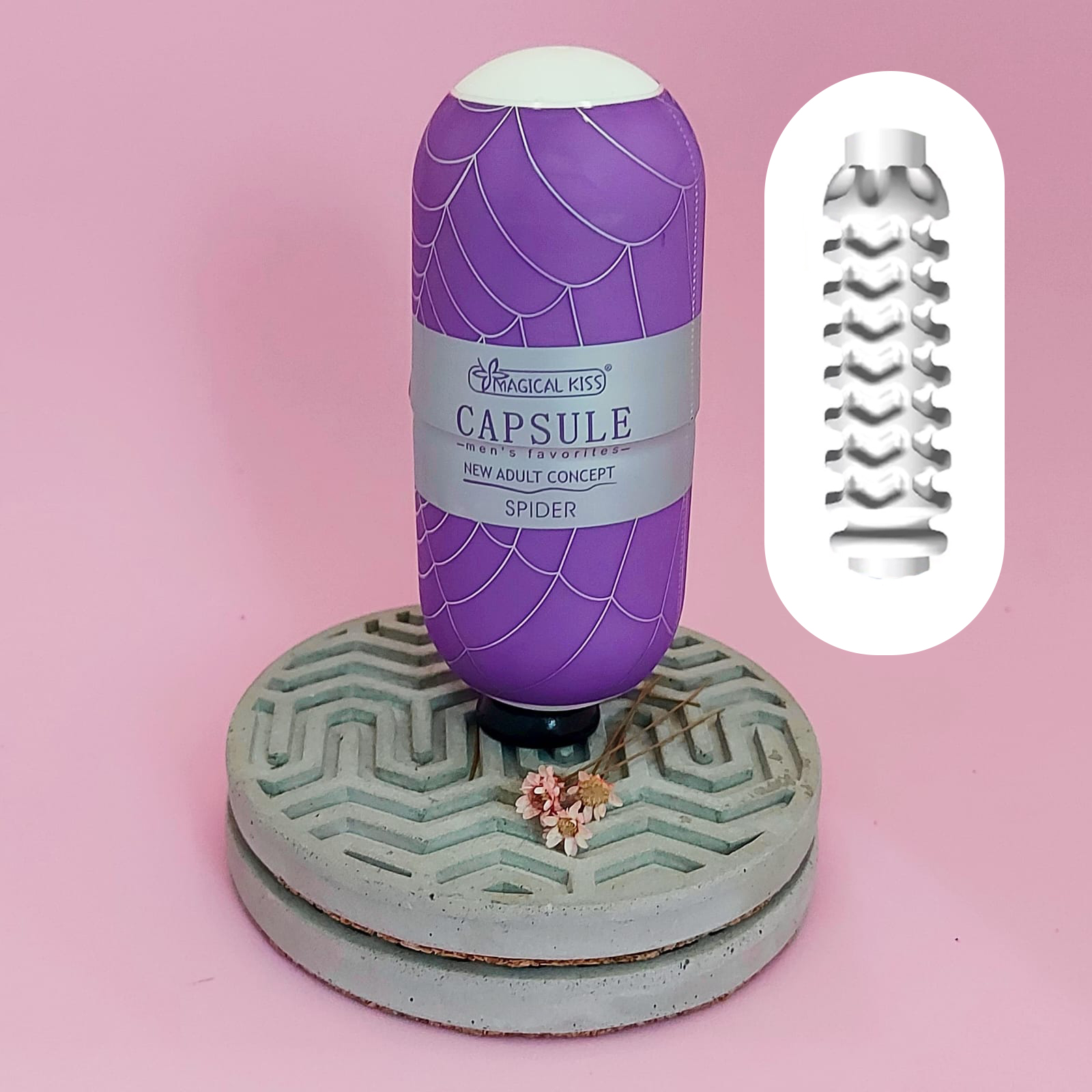 Dentro da embalagem em forma de casca, você encontra uma peça de silicone que imita uma capsula, porém, por dentro,